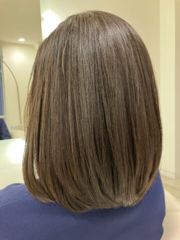 ヘアーカラー はセルフカラーです。アルカリの強さと白髪を染める黒い染料が髪をゴワつかせ、艶透明感が無く良いコンディションではありません。