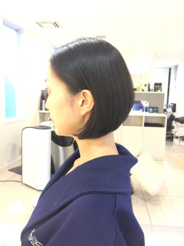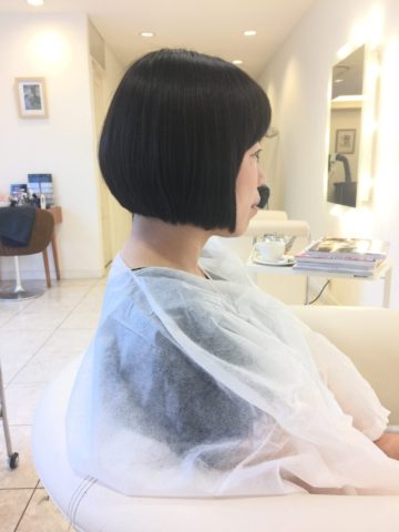 サロンワークでいつもボブヘアーに意識していることは、お客様のご希望もありますが、長さの設定を似合わせの中で一番しめるので、ここを一番慎重にお客様と考えます。お顔の作り、首の長さ、肩幅、などを考慮して一番バランスの良い長さを見極めて、さらに横から見た時の丸さの位置を考えます。この丸みの位置も大切で、お顔が細い方は細さをカバーできる丸さにし、お顔が丸方はお顔が細く見えるように丸みを変えたりします。またご自分では見えませんがバックの丸みの位置もとても大切です。ヘアースタイルは後ろから、横から見られる傾向がありますのでシンプルなスタイルなボブにはごまかしが効きませんので絶えず勉強です。