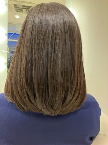 セルフカラーや白髪染めは髪色はくすみがあり、手触りはアルカリの強さがありゴワゴワで硬さがどうしても出てまいります。今回のヘアーケアはホームカラーの残留アルカリを抗酸化ミネラルデトックストリートメントで完全除去しヘアーカラー 剤や紫外線などからの活性酸素を水素で無毒化にし、最後に白髪や髪の痩せ、髪の油がない髪をエイジング毛と言いますが最後に油を入れてダメージケアを行いました。ヘッドスパは毛穴の老廃物、シャンプートリートメントのカスを除去し血行を良くするためにEMSとイオン導入で発毛プログラムとスキャルプパックマッサージをいたしました。