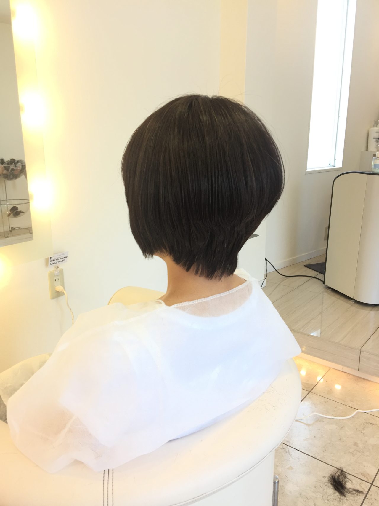 デザインカット・グラディションボブ・耳掛けスタイル・後頭部の膨らみが綺麗なショート