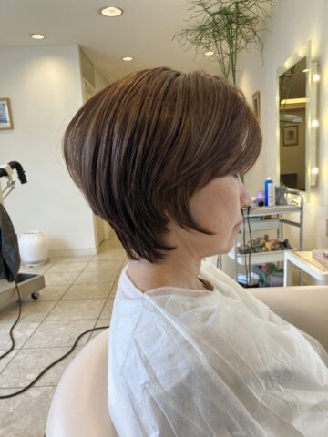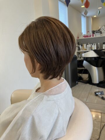 癖でお悩みのゲスト。今回は毛先を曲げを入れてショートにある、毛先の硬さ直線すぎる仕上がりを、更に自然な仕上がりにするご提案をいたしました。一番痛みがある毛先に還元剤や熱などからの物理的なストレスを与えずに手触りも感動の域です!ニュアンスゼロ