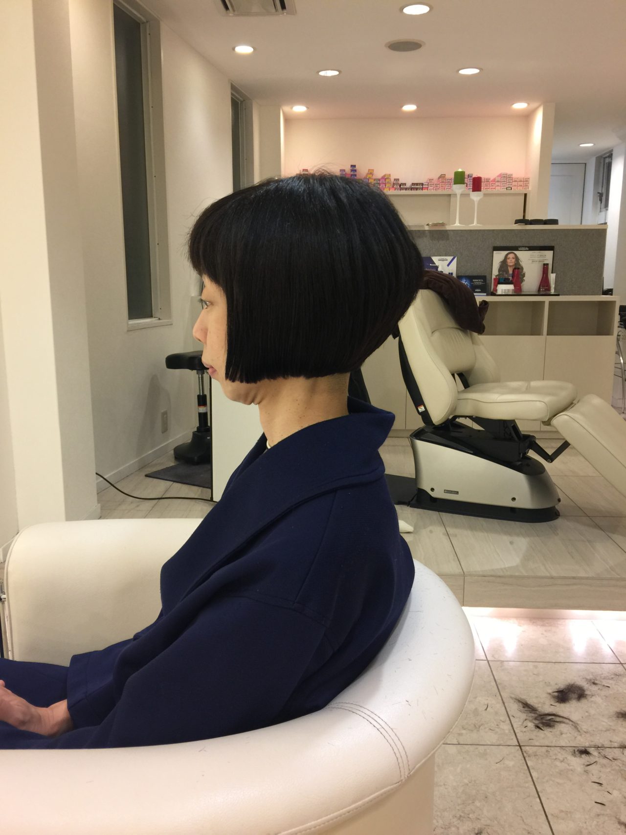 ボブのウエイトを最低限残して丸みをだしその他のボリュームゾーンは段(レイヤー)を丁寧に積み重ねました。バランはFB1:1WB1:1