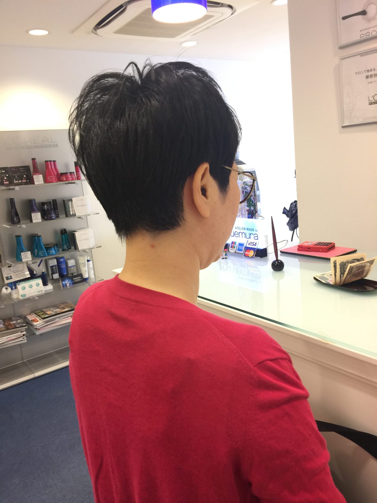 デザインカットは頭の形を綺麗に見せるためにフォワードグラディションのテクニックを使い奥行きも入れたフォルムを目指しました