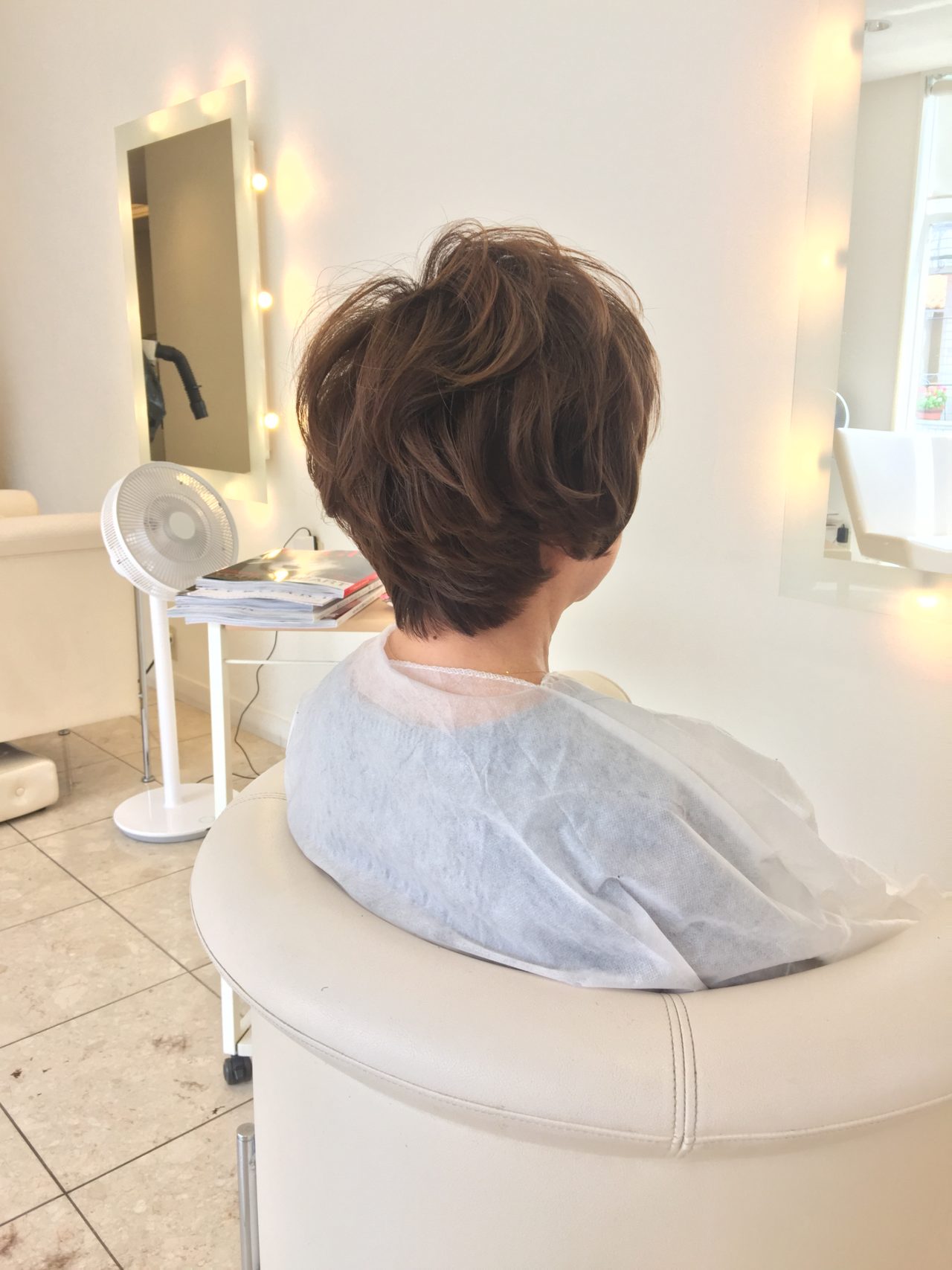 デザインカットは伸ばし途中なのでウエイトはしっかりキープしながらのデザインです