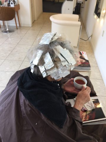 ハイライトとローライトで白毛のバランスを調整してお肌に合う色のアッシュシルバーをON