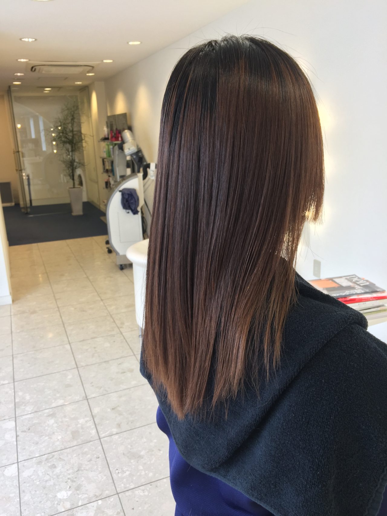 今後のカラーと共存できる髪の体力をできる限り奪わないように施術致しました