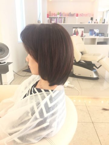 ヘアーカラーも定期的にしておりハイライトも入れたヘアーカラーデザインですので髪の体力を奪わないように髪のPHに近いパーマ剤、ハイライトの髪の強度の弱い部分に合わせながら、かつ、癖も伸ばせるようにパーマ剤のPHをデザイン致します。