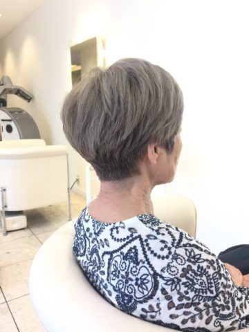 デザインカットはお顔が細いのでサイドに丸みボリュームを残したスタイルにデザイン致しました。