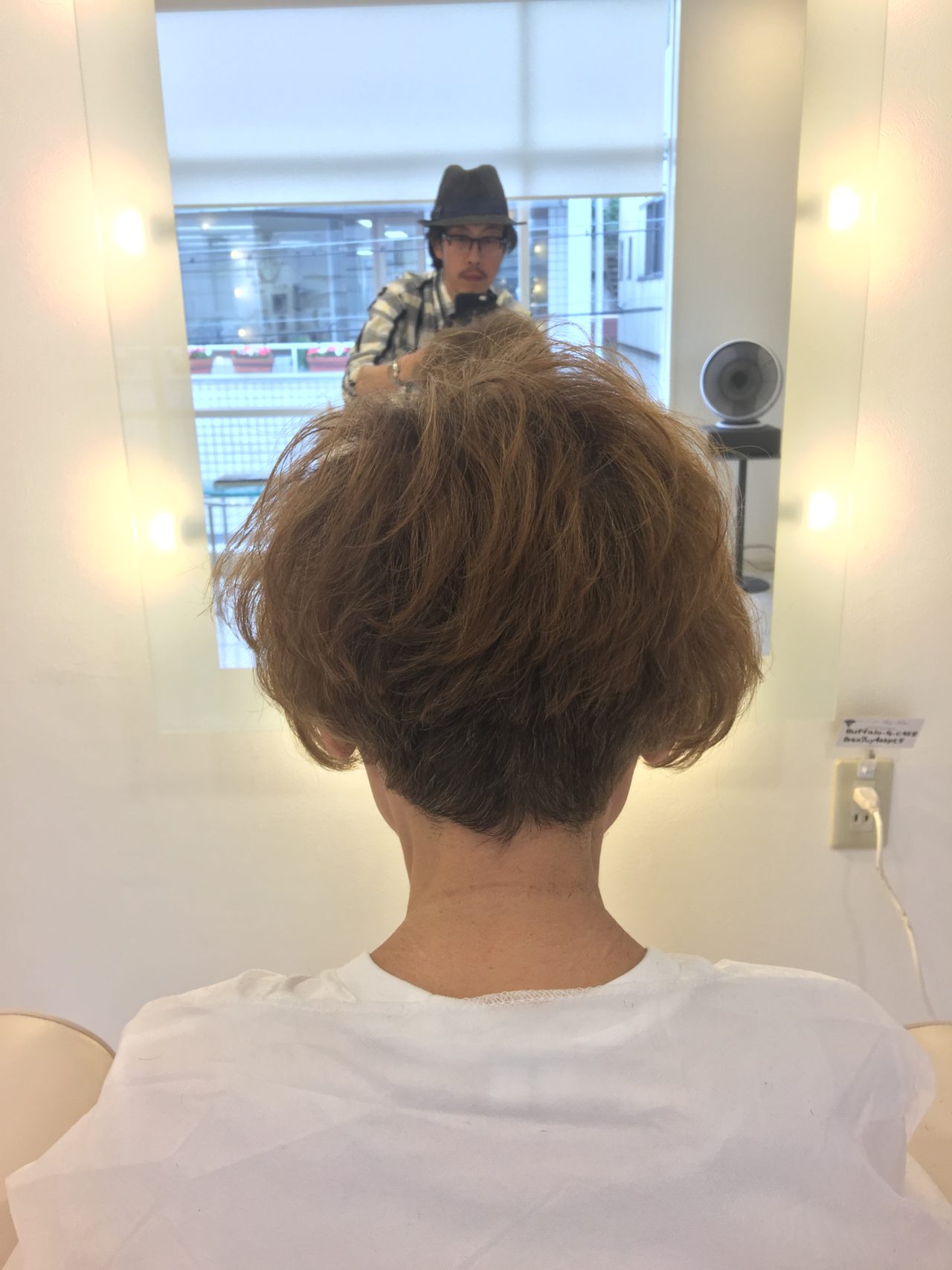 デザインカットは通常のボブカットは髪の毛束を下にとかしてカットするのが原理原則に合いますがそうするとトップの長さが長過ぎる傾向になりペッタンコになりますので全ての髪を持ち上げたレイヤーベースにすることにより髪が動きやすくなり癖も出やすくなりボリュームアップいたします。