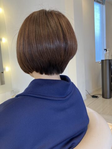 絶壁解消シルエット: 後頭部に美しい丸みを持たせ、首筋をスッキリ見せるタイトな襟足。360度どこから見ても「骨格美人」な仕上がりに。
