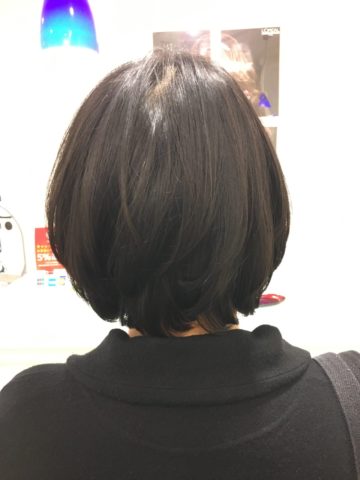 髪に優しい酸性の薬剤を使用して、ストレートアイロンと床屋さんで使用する、パンチアイロンのW使いでストレートと丸みを作り、毎日のスタイリングを楽にすることを致しました。